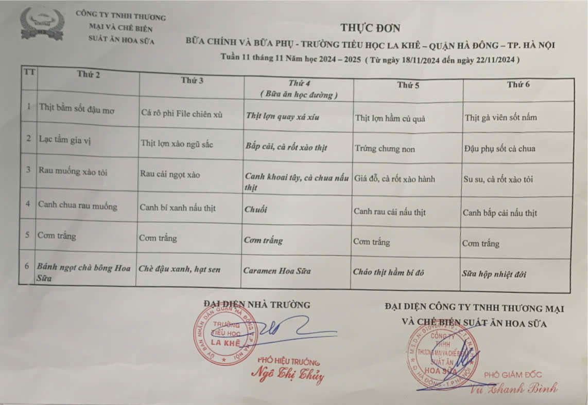 Thực đơn bán trú Tuần 11 tháng 11 năm học 2024 - 2025 (từ ngày 18/11/2024 đến ngày 22/11/2024)