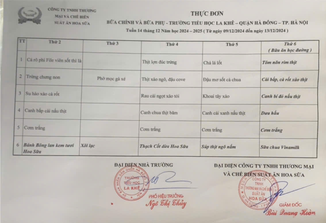 Thực đơn bán trú Tuần 14 tháng 12 năm học 2024 - 2025 (từ ngày 09/12/2024 đến ngày 13/12/2024)