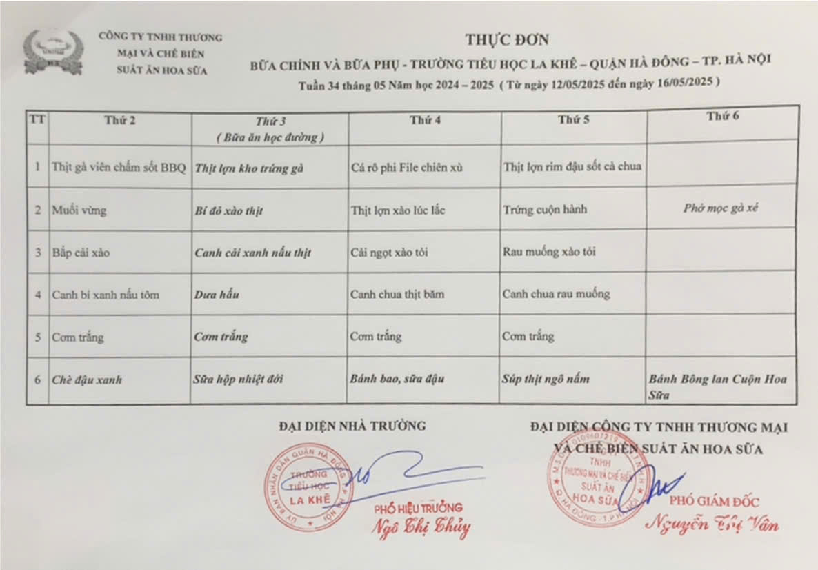 Thực đơn bán trú Tuần 34 tháng 05 năm học 2024 - 2025 (từ ngày 12/5/2025 đến ngày 16/5/2025)